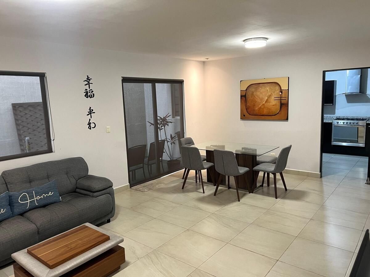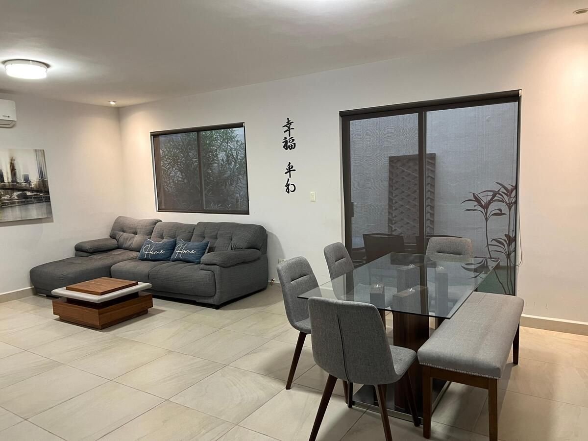 Casa en renta amueblada, ubicada en Bosques de las Cumbres, dentro de fraccionamiento privado con vigilancia 24/7 y acceso controlado.