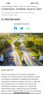 ¡Descubre el lugar ideal para construir la casa de tus sueños! Este encantador terreno campestre de 1,000 m² en el exclusivo Fraccionamiento Puerta Dorada, Ubicado en el corredor Cadereyta-Allende en Nuevo León, es el lugar perfecto para construir la casa de tus sueños.